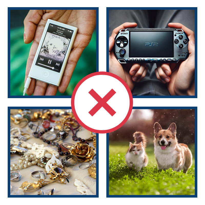Personal items, Grooming kit, Toiletries, Paper towels and Garbage bags